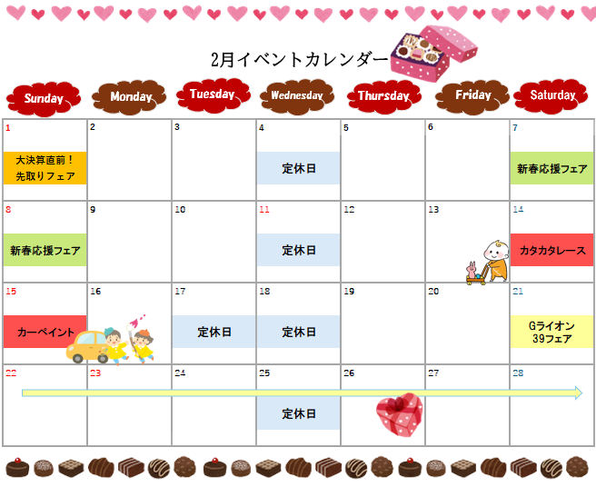 2月イベントカレンダー配信のお知らせ🗓️🍫